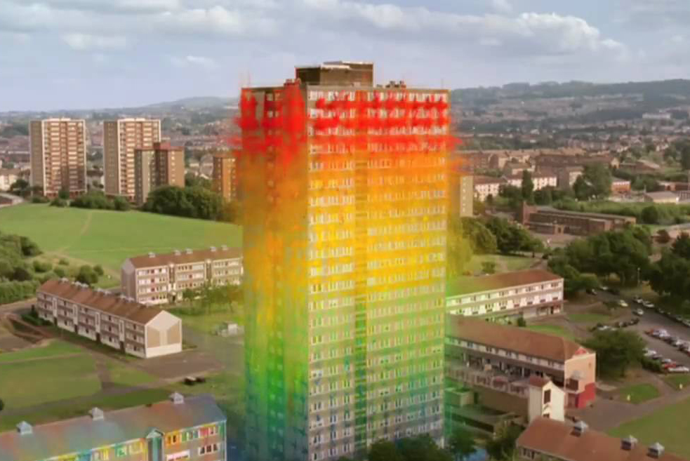 En el mismo mes de julio pero 34 años más tarde de la demolición del Pruitt-Igoe, se llevó a cabo en un complejo de edificios de la ciudad de Glascow, Escocia (complejo que estaba apunto de ser demolido) una de las más emblemáticas campañas publicitarias de los últimos tiempos.